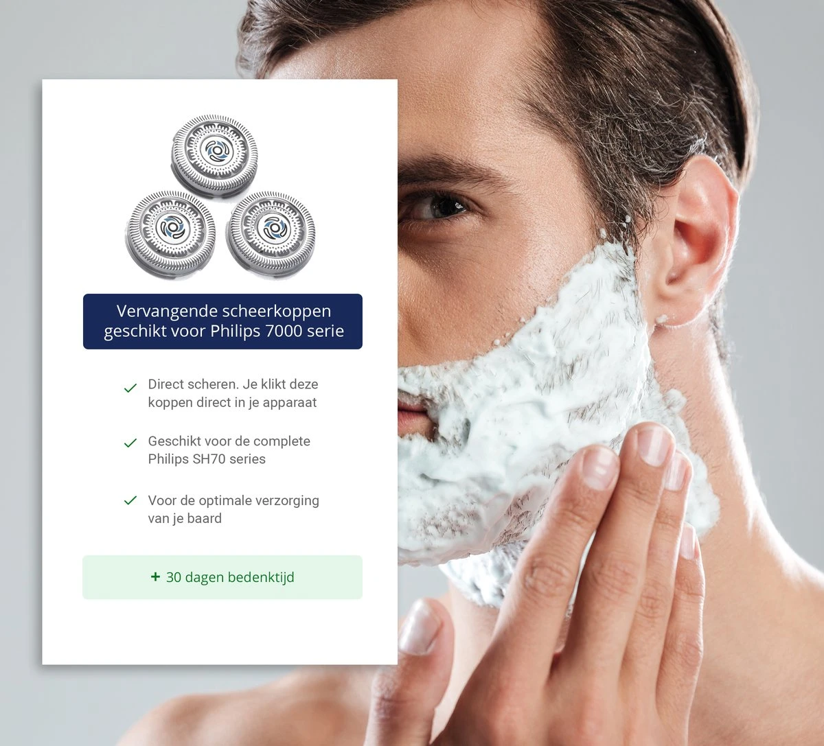 Deze set van 3 scheerkoppen vervangen de mesjes geschikt voor de Philips 7000 serie SH70. Voor een glad en optimaal scheerresultaat zijn scherpe mesjes een must. Wij raden aan de mesjes minimaal eens per jaar te vervangen. Op deze manier voorkom je botte mesjes, wondjes en heb je altijd het gewenste resultaat.