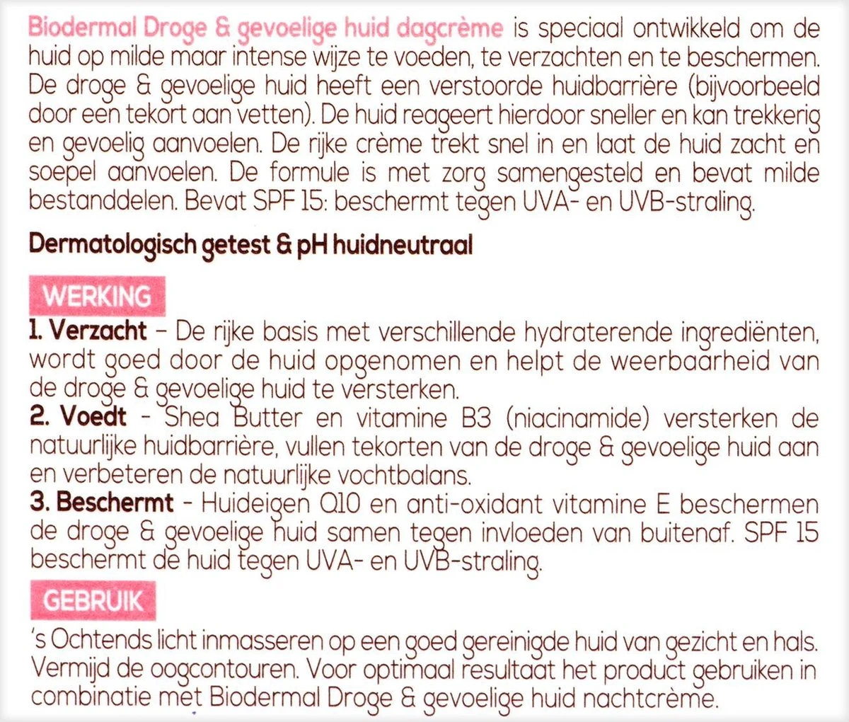 Gebruik dit product voor een optimaal resultaat in combinatie met Biodermal droge & gevoelige huid nachtcrème
