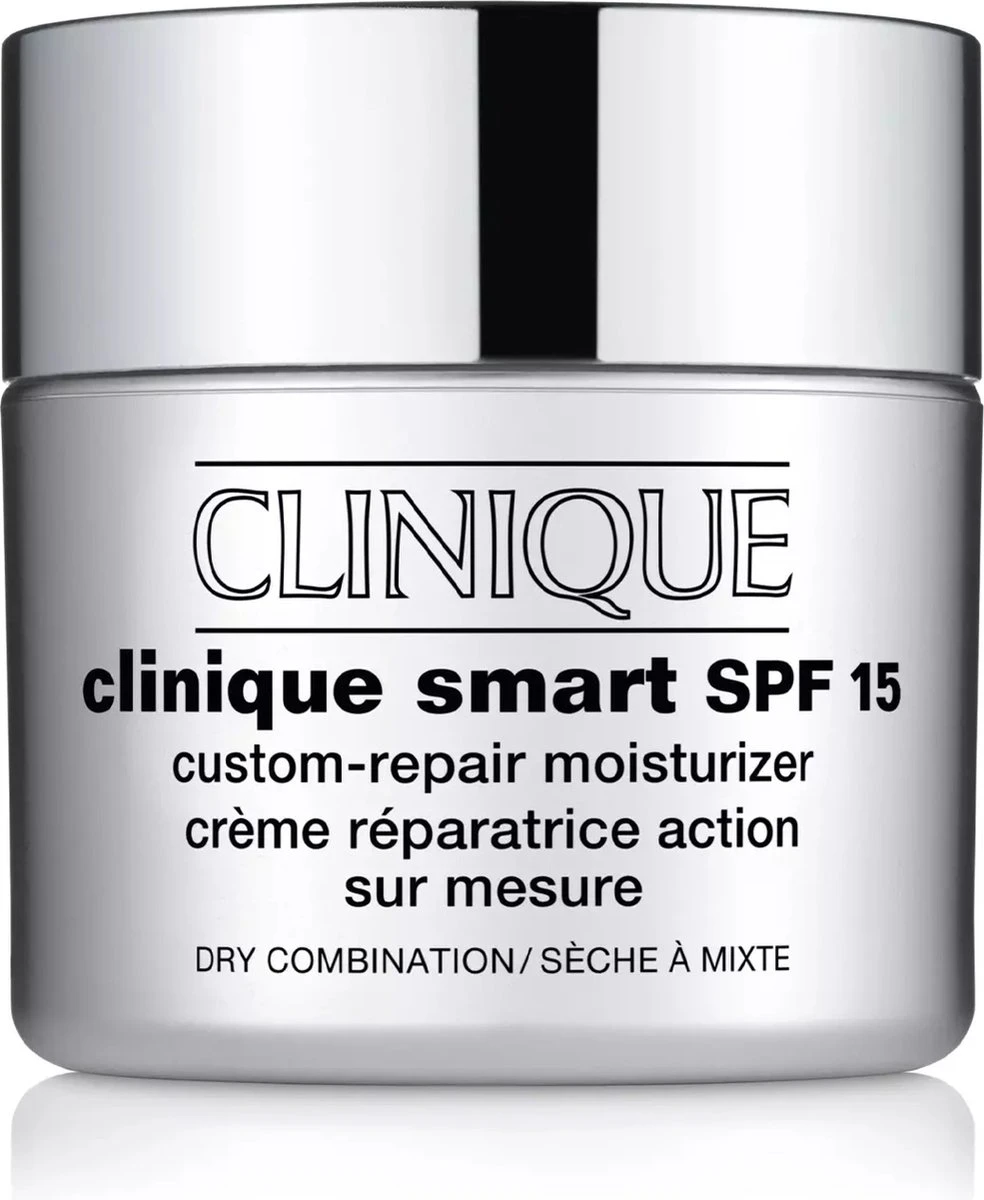 Clinique Smart Custom-Repair Day Care SPF 15 droog te combineren is een verzorgende en beschermende dagcrème voor de droge tot gemengde huid. De verzorging met lichte zonwering helpt tekenen van huidveroudering en andere beschadigingen te herstellen en nieuwe huidvorming te voorkomen. De textuur is vrij van oliën en parfum, zodat het zeer goed verdragen wordt.
