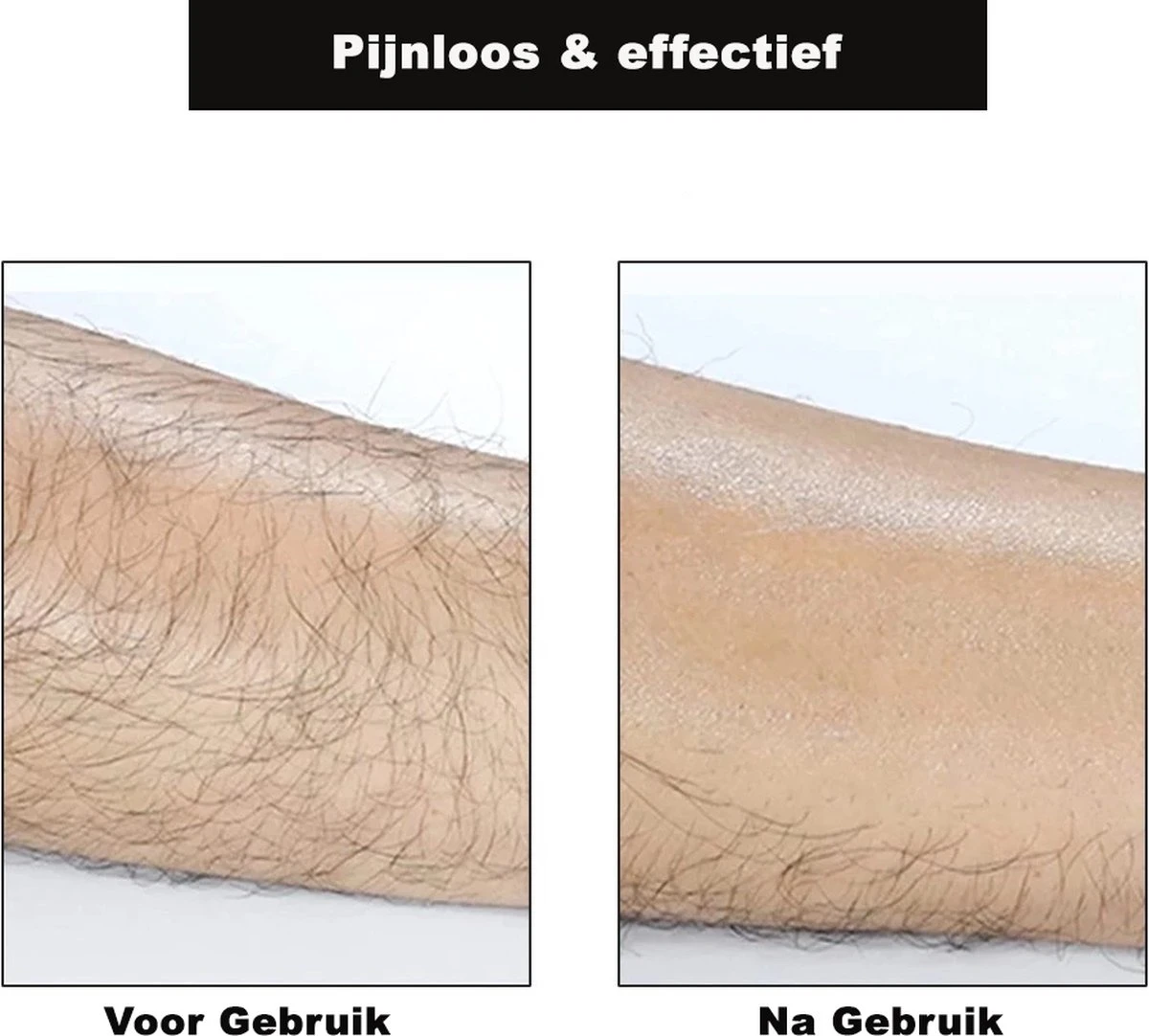 Crystal Hair Eraser is veilig te gebruiken op knokkels, armen, benen, borst en rug. We raden echter aan om niet te veel te gebruiken of te hard te wrijven. Als u een gevoelige huid hebt, probeer het dan eerst op uw armen/benen voordat u het op andere delicate delen gebruikt.
