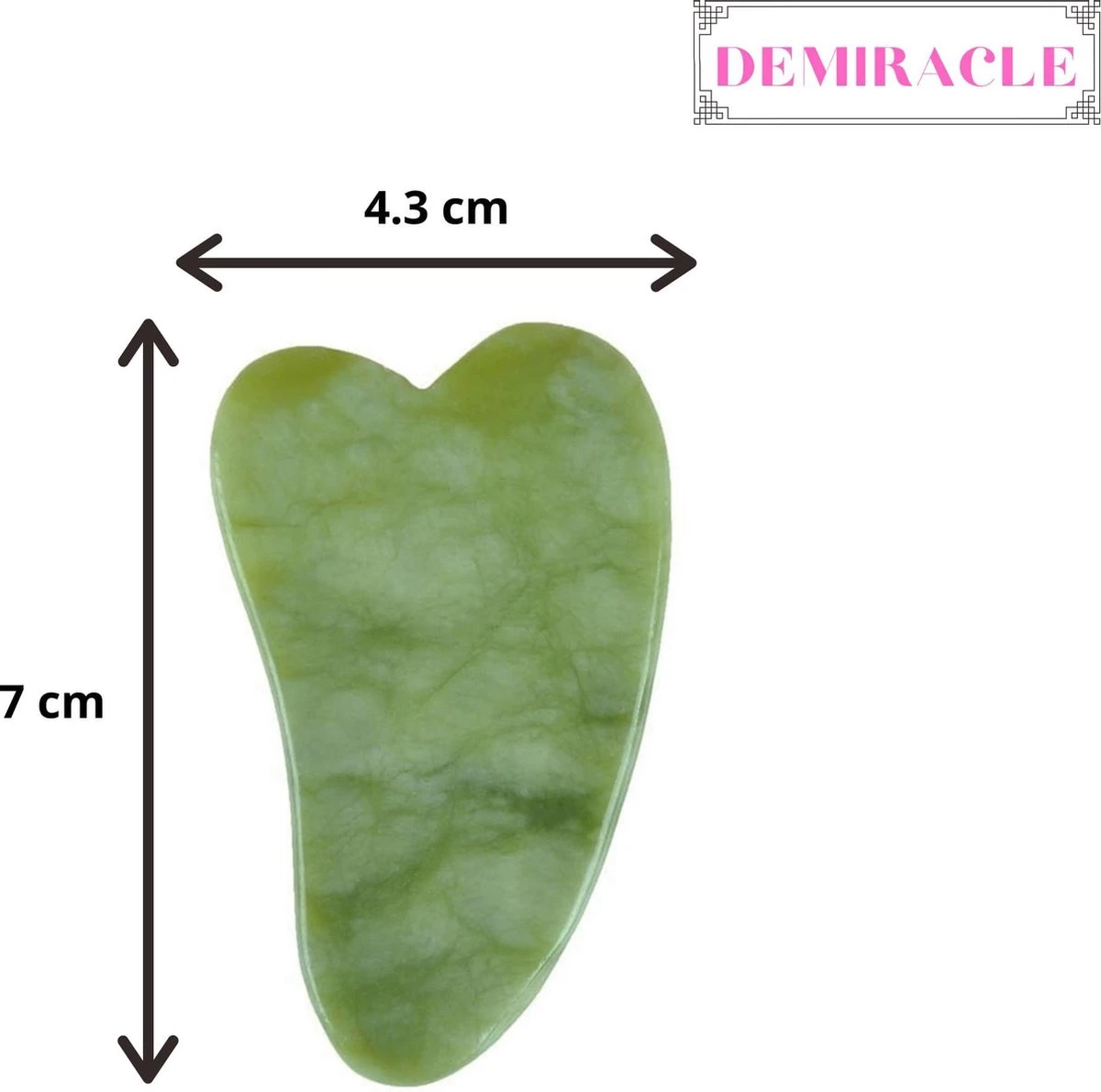 Deze schraper is gemaakt van Jade. Jade is een bijzondere edelsteen die van oudsher wordt gebruikt bij Oosterse schoonheidsrituelen. De Jade edelsteen heeft veel positieve effecten voor je mentale en fysieke gezondheid. Goed gebruik van deze Gua Sha Schraper zal voor wonder resultaten zorgen.