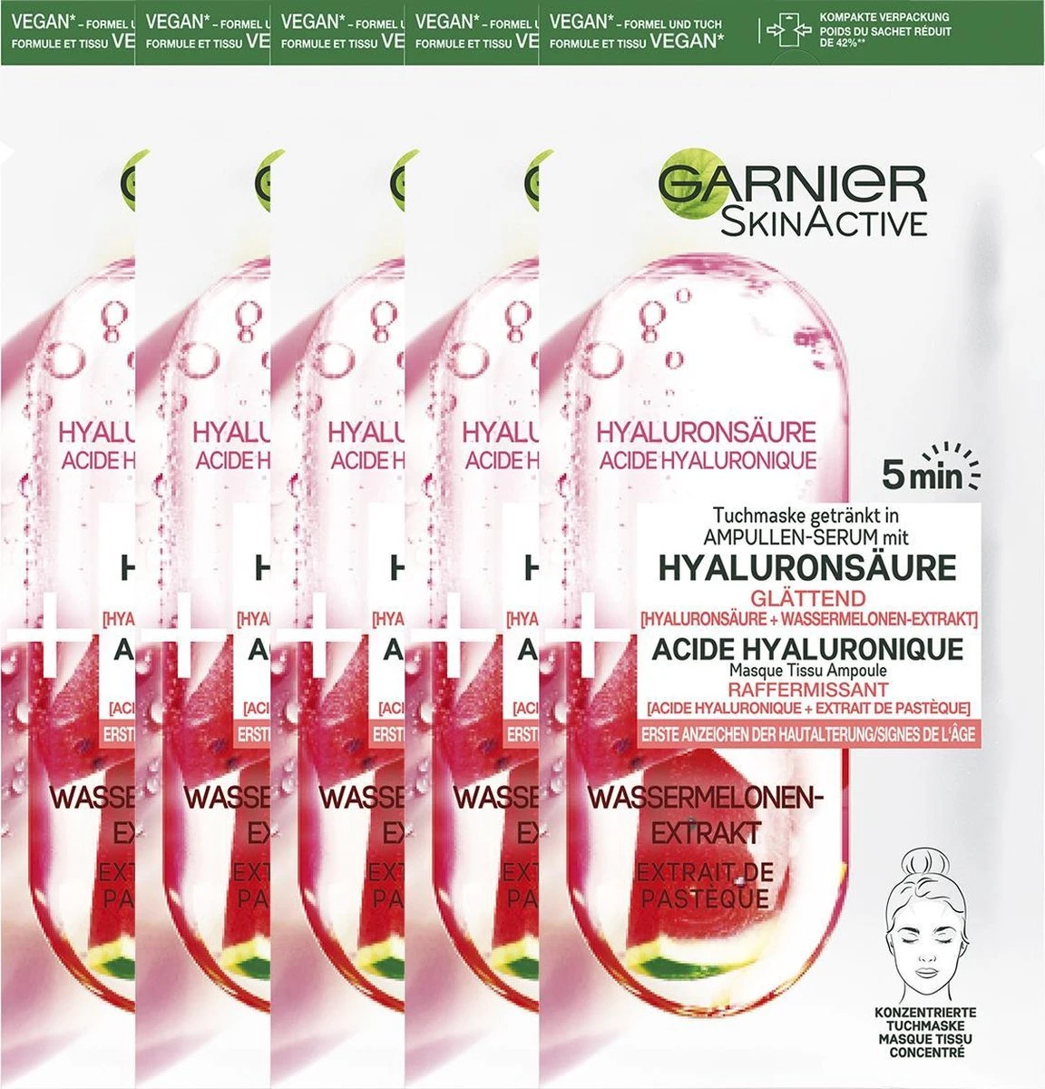 Garnier SkinActive Ampul Sheet Mask Met Watermeloen & Hyaluronzuur voor een intense boost van de huid in slechts 5 minuten.