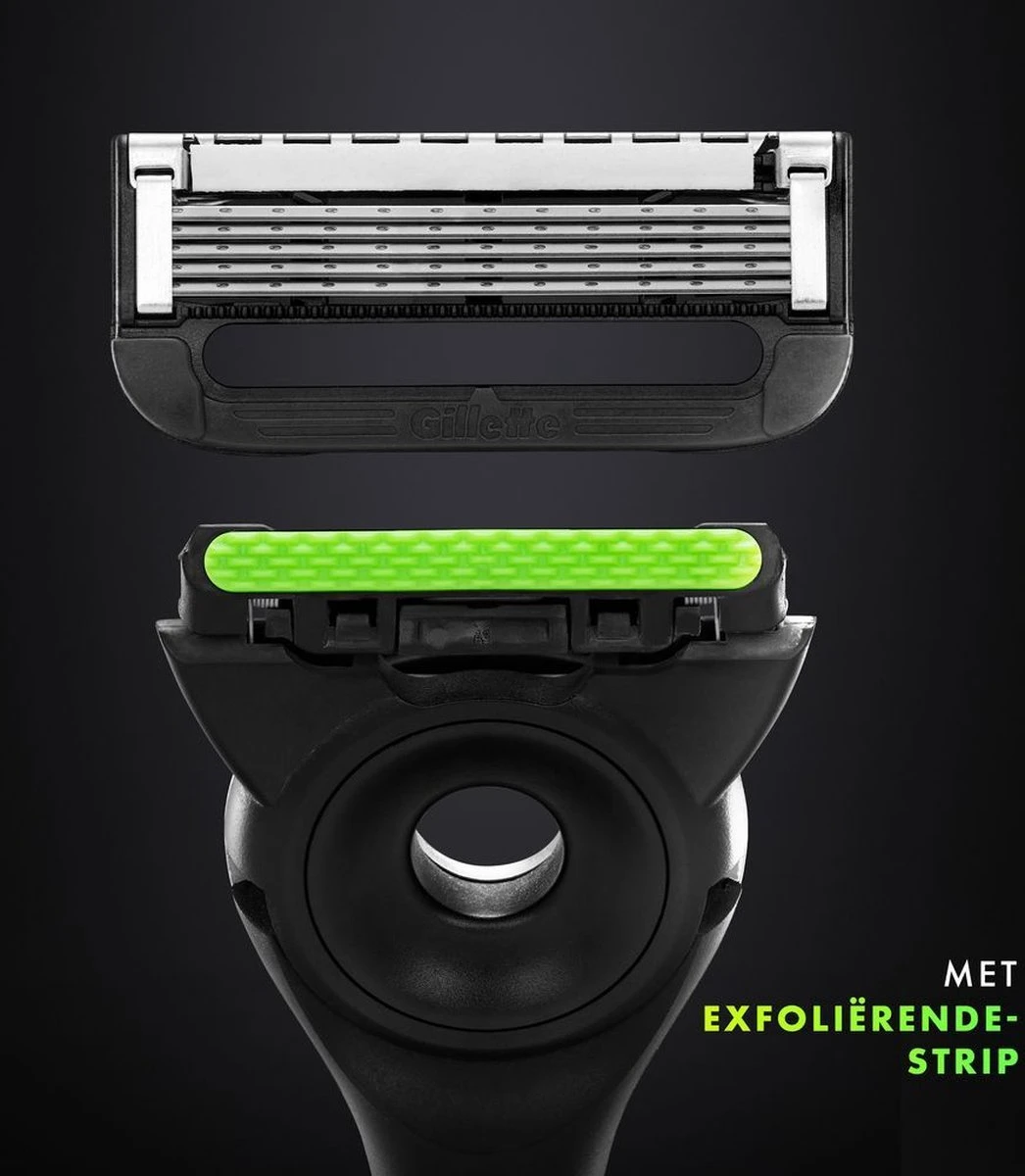 Moeiteloze scheerbeurt in één beweging dankzij de ingebouwde exfoliërende strip en de 5 scherpe mesjes van Gillette