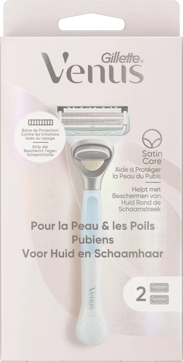 Het scheermesje voor Huid en Schaamhaar van Gillette Venus is speciaal ontworpen voor het beschermen van de huid rond de schaamstreek met behulp van de geavanceerde Strip die Beschermt Tegen Scheerirritatie. De optimaal geplaatste mesjes zorgen ervoor dat de mesjes haartjes scheren terwijl ze de huid nauwelijks raken. De navulmesjes zijn ook uitgerust met een precisietrimmer aan de achterkant van de mesjes om te helpen bij lastige plekken. Gebruik samen met het volledige Venus Satin Care voor Huid en Schaamhaar assortiment voor een optimaal resultaat.