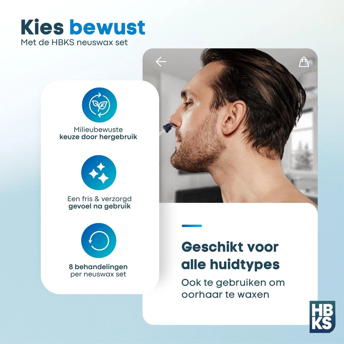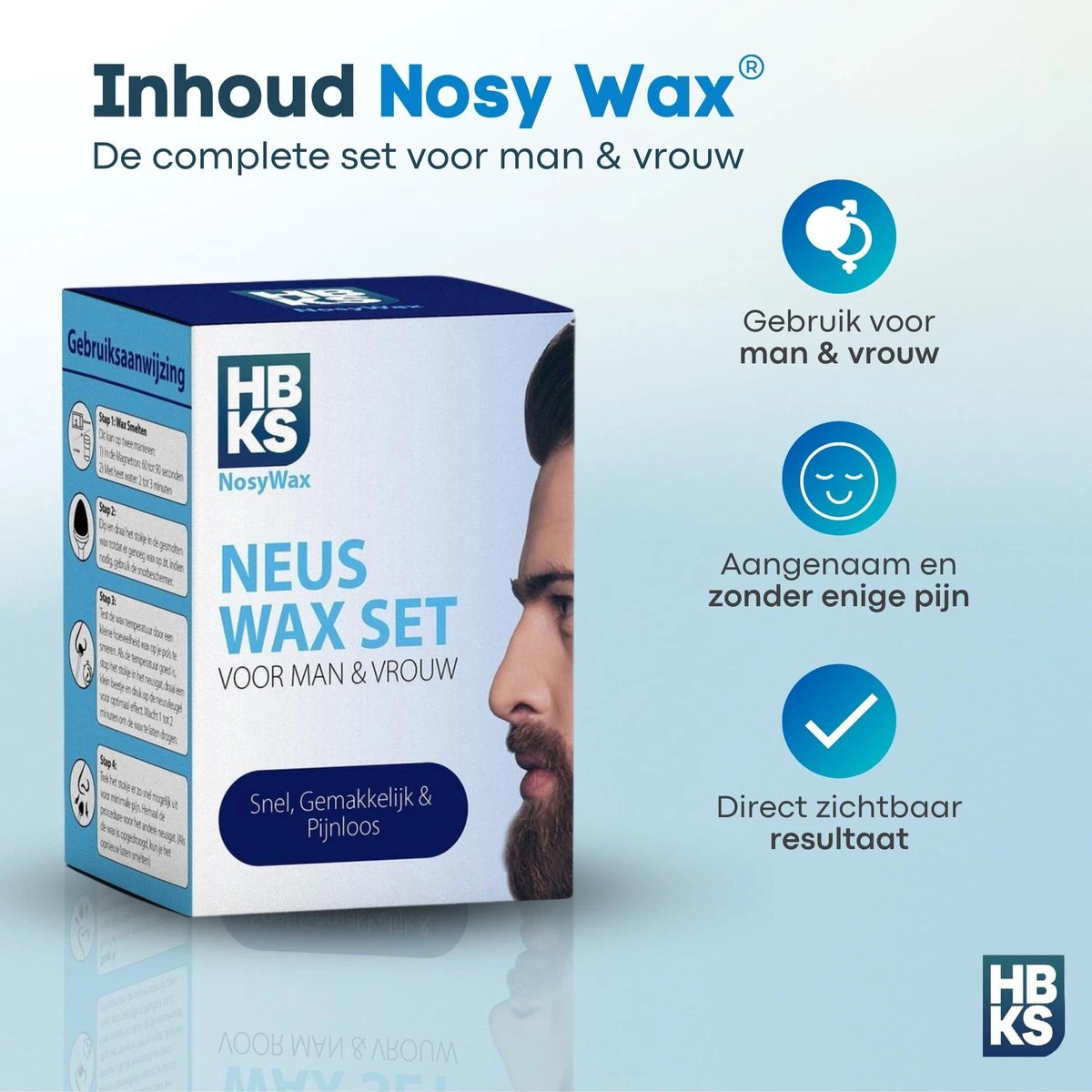 De HBKS NosyWax bevat alles wat je nodig hebt en is makkelijk en zeer snel te gebruiken. Dit pakket voorziet u van zeven keer een neushaarvrije periode van 30 dagen en is zeer gebruiksvriendelijk. Het gehele proces van ontharen duurt maximaal 5 minuten en is makkelijk te volgen met de bijgeleverde gebruikshandleiding.