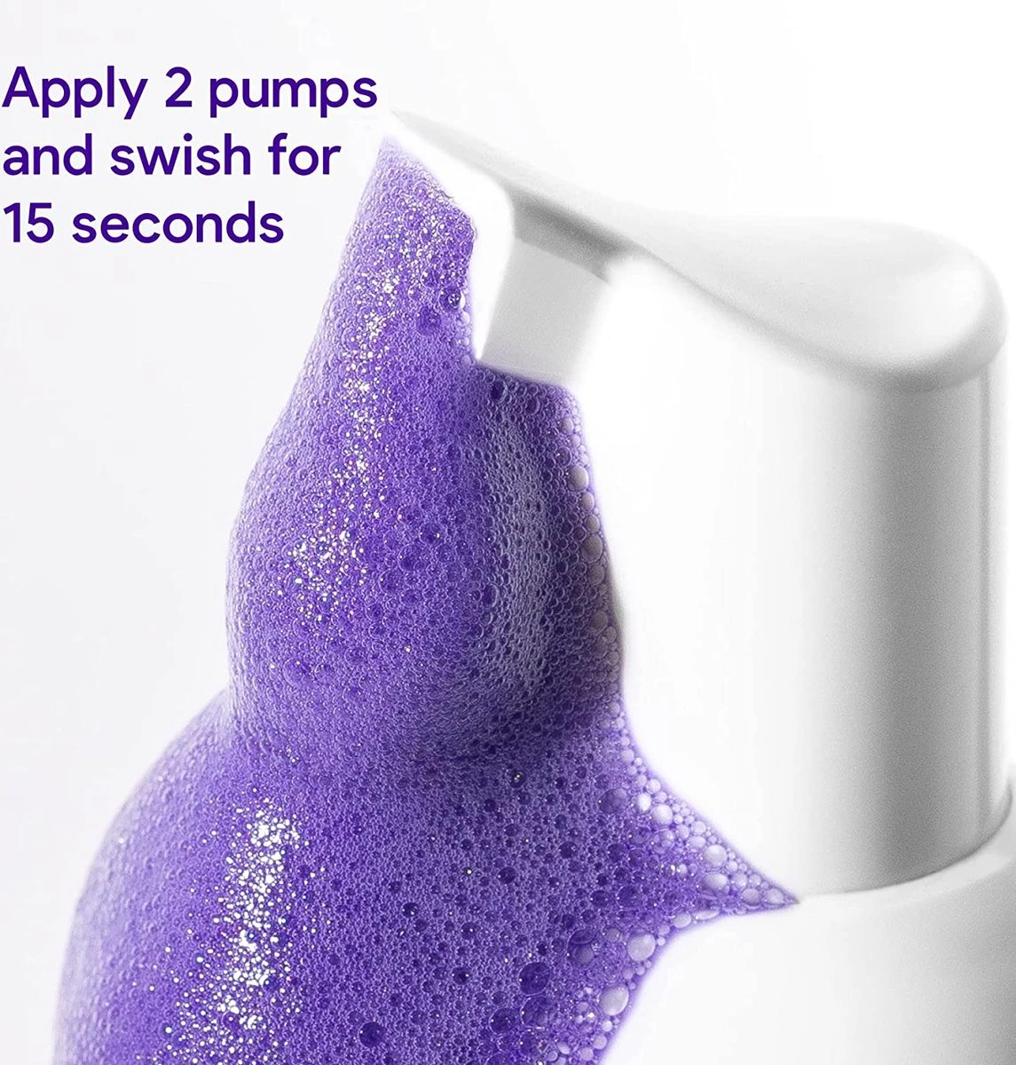 – Laat het schuim 15 seconden in je mond ronddraaien