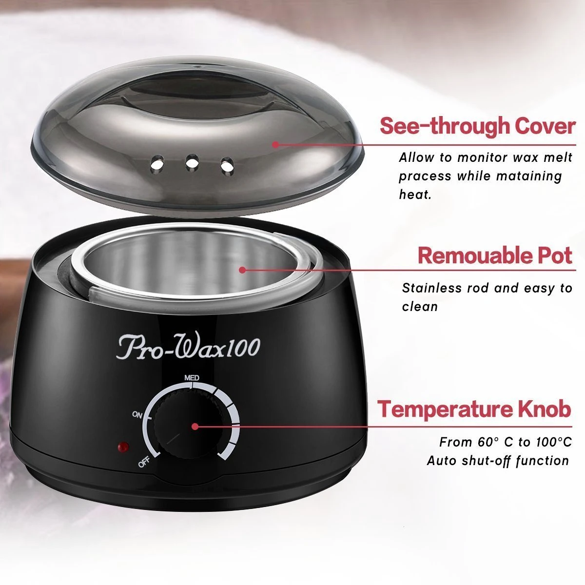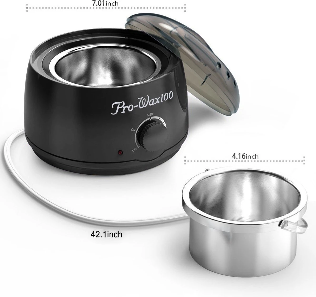 360° HEATING COIL Smelt WAX EVEVLY – Het temperatuurbereik van deze wasverwarmer is 35 ℃ tot 105 ℃ (95 ° F – 221 ° F). De 360° verwarmingsspiraal smelt wax snel en gelijkmatig binnen 10-15 minuten.
