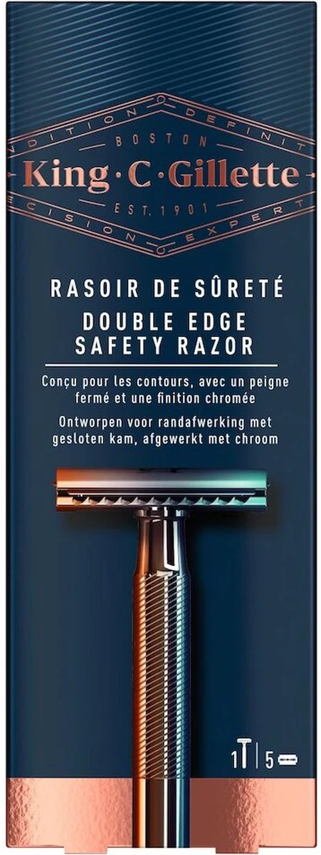 - Inclusief 5 King C. Gillette scheermesjes met platinalaag van hoge kwaliteit