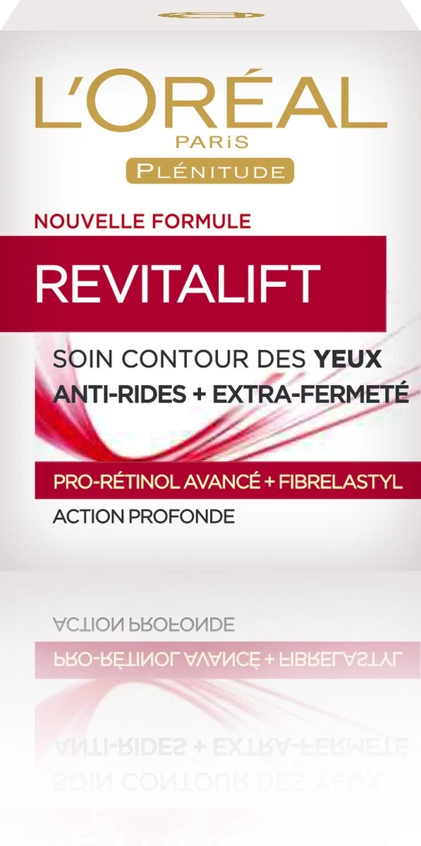 LOral Paris Revitalift OogcremeOogcreme met dubbele werking; anti-rimpel + stevigheid. Pro-Retinol A, een krachtig anti-rimpel bestanddeel, stimuleert de cellulaire regeneratie. Elasti-flex vermenigvuldigt en versterkt het netwerk van elastinevezels om hen meer veerkracht te geven. Het steunweefsel van de huid wordt voller voor elastischere en stevigere huid.