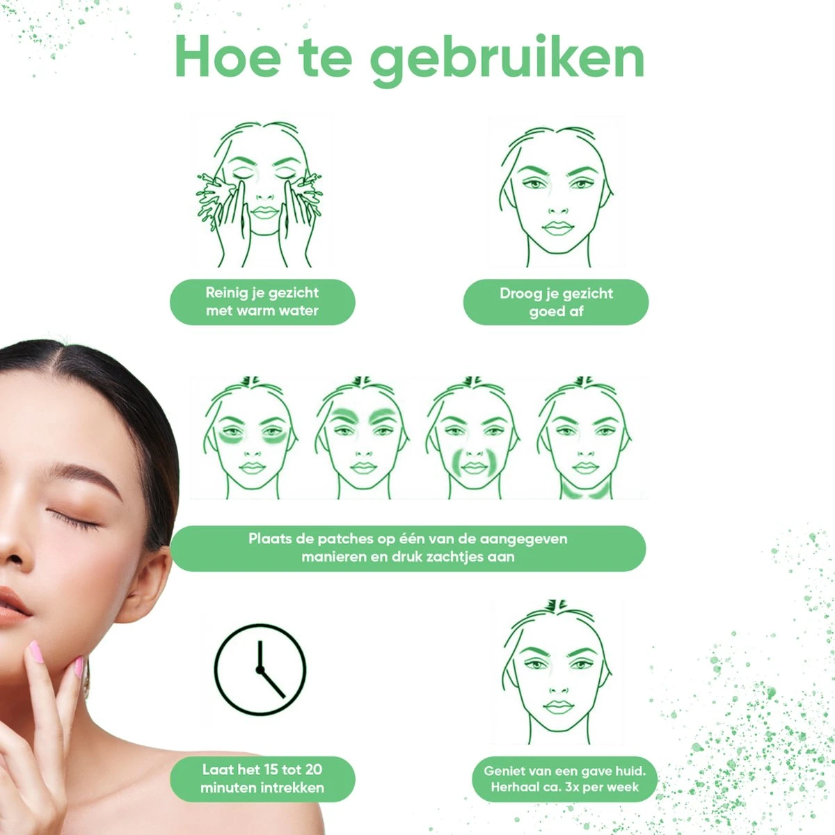 Hyaluronzuur: Hyaluronzuur in het oogmasker biedt een onmiddellijke en langdurige hydratatie aan de huid rondom de ogen en laat het de huid rusten. Het effect maakt je jonger eruit zien en voelen.
