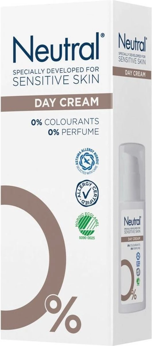 De Neutral Day Cream bevat glycerine wat zorgt voor een goede hydratatie van de huid waardoor deze zacht aanvoelt en er stralend uitziet. De crème bevat 0% parfum, 0% kleurstoffen en 0% parabenen. Hierdoor is de Neutral Day Cream een milde en hydraterende crème voor iedereen met een gevoelige huid. Deze is speciaal ontwikkeld voor gebruik overdag. Doseer de voor jou gebruikelijke hoeveelheid crème in de palm van je hand. Pas toe op je gezicht door de crème zacht in te masseren. Vermijd het gebied rondom de ogen. Voor een perfecte aanvulling op je dagelijkse gezichtsverzorging kan je ook Neutral Night Cream gebruiken. Wanneer je een allergie of een gevoelige huid hebt, mag dit geen belemmering zijn om van het dagelijks leven te genieten. Neutral heeft zich daarom gespecialiseerd in producten die het risico op huidirritatie verminderen. Alle producten van Neutral bevatten daarom ook geen toevoegingen, waaronder parfum en kleurstoffen. Deze stoffen verhogen het risico op huidirritatie namelijk. Verder biedt Neutral een complete range van huishoudelijke- en huidverzorgings- producten die speciaal ontwikkeld zijn om het risico op allergische- of huidreacties te verminderen. Neutral 0% producten worden aanbevolen door de Danish Asthma en Allergy Association en zijn speciaal ontwikkeld voor de gevoelige huid. Neutral, dat voelt goed. Voor meer informatie, bezoek www.Neutral.nl