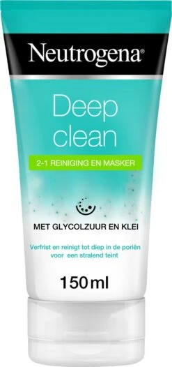 - Neutrogena® Deep Clean 2-1 gezichtsmasker met klei en glycolzuur reinigt het gezicht en beschermt tegen schadelijke stoffen van buitenaf