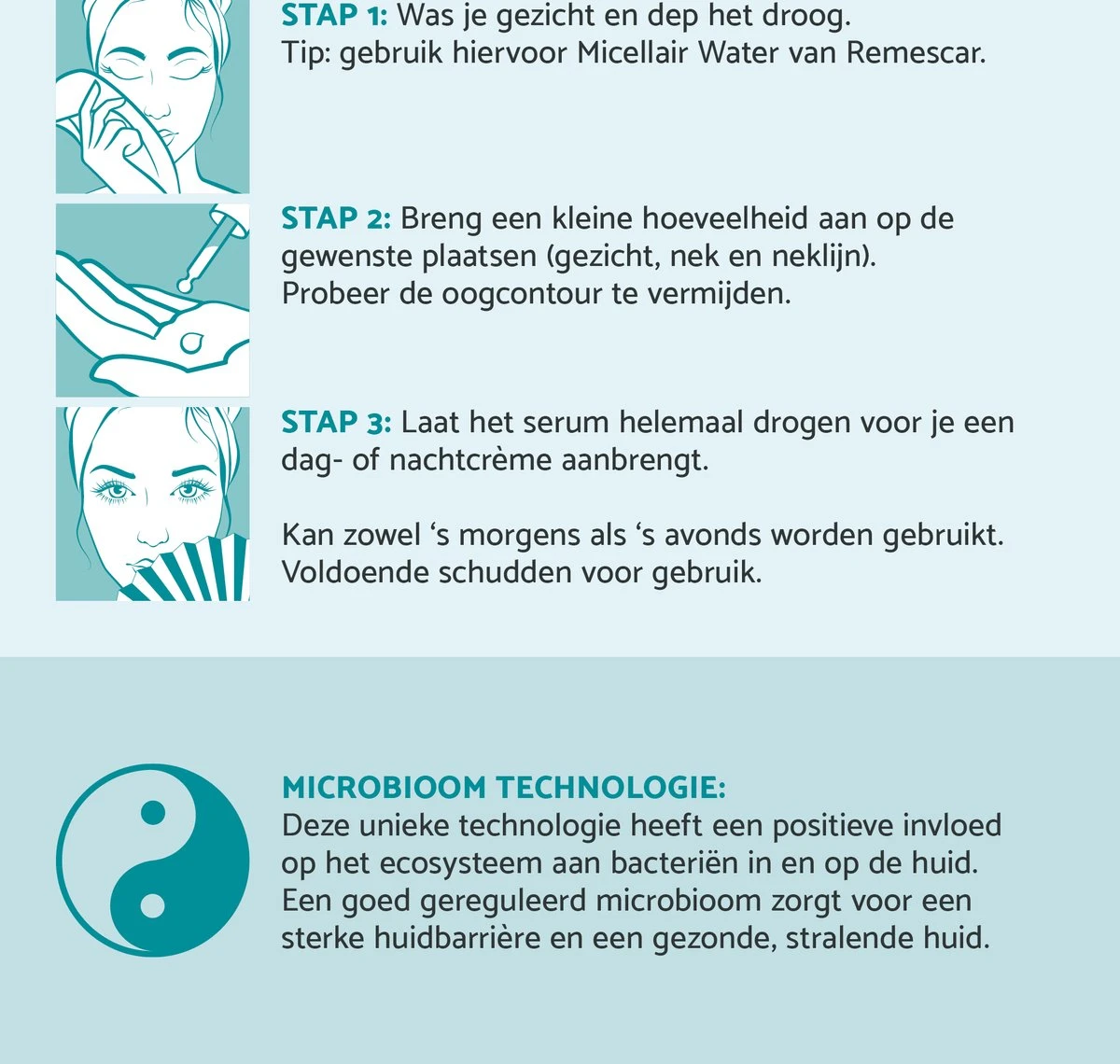 - MICROBIOME TECHNOLOGIE – Het microbioom van de huid is het ecosysteem van bacteriën die op de huid leven. Het microbioom heeft een directe invloed op het algehele uiterlijk van de huid; een onevenwichtig huidmicrobioom zal leiden tot huidproblemen. Onze Microbiome Technologie richt zich op, stimuleert en voedt de microflora om ervoor te zorgen dat de biodiversiteit en homeostase van de huidmicrobiota in balans is.