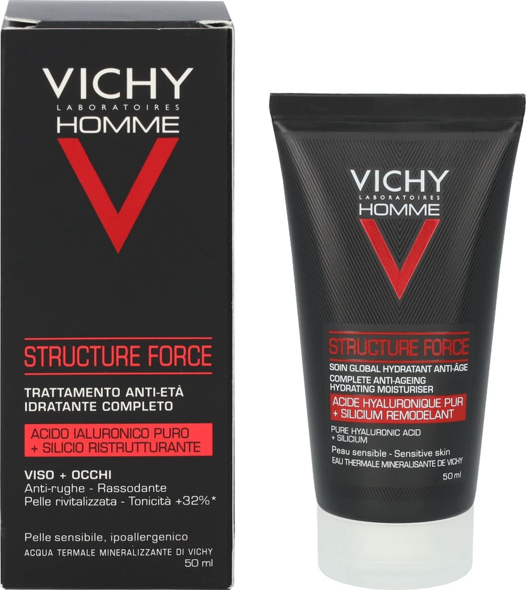 De huid van mannen veroudert op een andere manier dan die van vrouwen, daarom behoeft deze zijn geheel eigen verzorging. Deze krachtige dagcrème Structure Force van Vichy werkt op niet één, maar vier tekenen van zichtbare huidveroudering waar mannen met het klimmen van de jaren mee te maken kunnen krijgen.