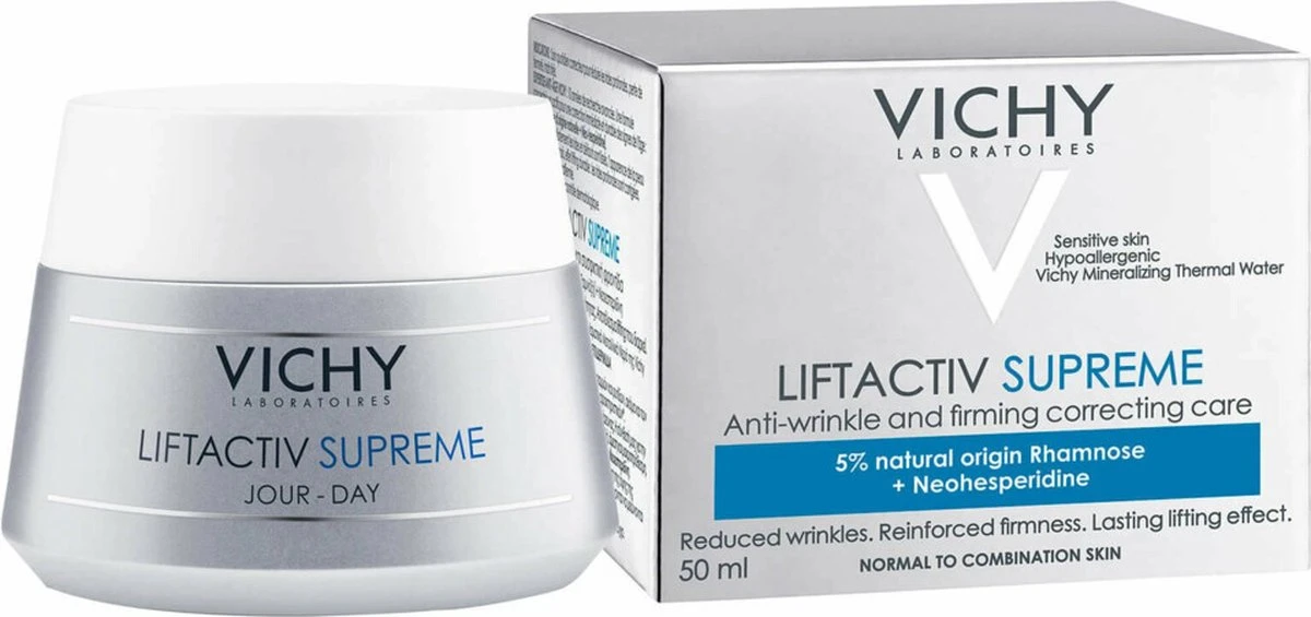 Liftactiv Supreme is een lichte, comfortabele anti-aging dagcrème die gelijk in de huid smelt. Het geeft de hele dag lang een fris gevoel aan het huidoppervlak. Niet-plakkerig, niet-vettig. Deze dagcrème biedt langetermijnresultaat, maar vooral direct effect: nu, vanavond, morgenochtend na het ontwaken. Vichy’s nieuwe generatie in dagverzorging is erop gericht dagelijkse huidveroudering in een handomdraai terug te draaien. Hiernaast is Lifactiv Supreme een ideale dagcrème voor onder zonnebrandcrème of make-up. Er is voor een geur gekozen die het risico op allergie zoveel mogelijk minimaliseert.