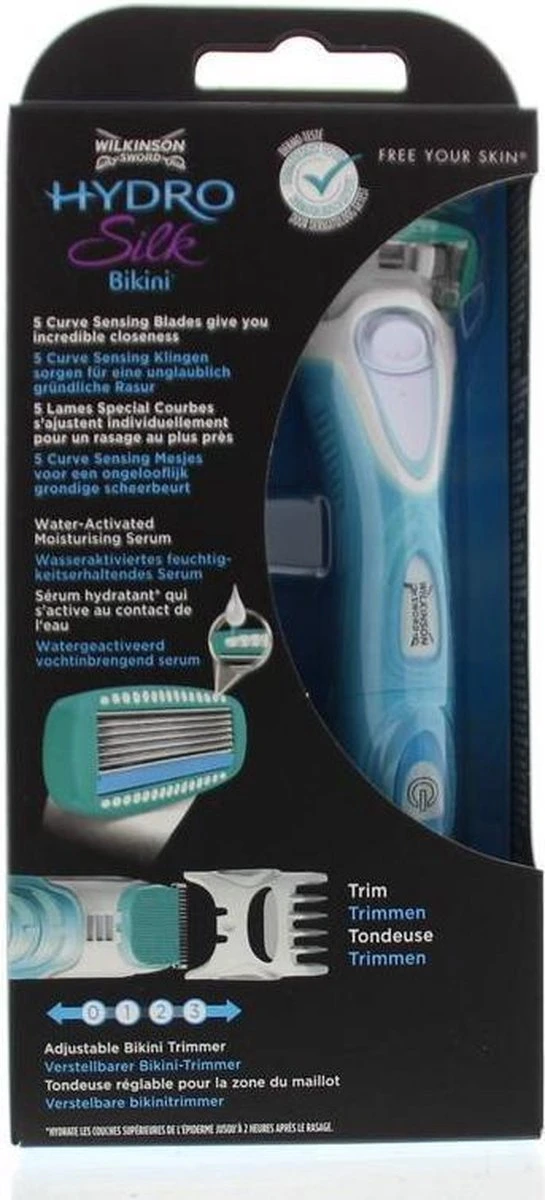 De Hydro Silk Bikini Trimmer van Wilkinson maakt het scheren van de bikinilijn nu nog makkelijker dan ooit: trimmen, scheren en stylen alles in 1! Het 2-in-1 scheersysteem zorgt voor exacte contouren, een aangenaam scheerresultaat en een zijde gladde huid.